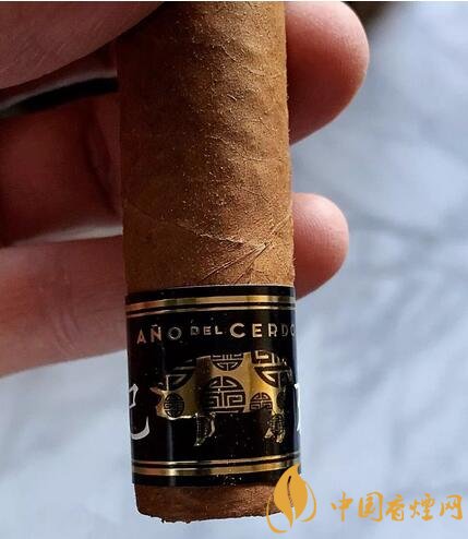 高希霸生肖雪茄并非特制的雪茄,使用的是醇化數(shù)年的量產(chǎn)雪茄,例如去年的高希霸狗年魔術(shù)師使用的是老標的高希霸魔術(shù)師,今年的高希霸羅布圖同樣使用醇化數(shù)年的雪茄。雪茄尺寸是50環(huán)徑,4.7英寸,今年的發(fā)行量是3000盒。雪茄有兩個煙標,一個是高希霸的標準煙標,一個是帶有中國生肖豬年標識的腳標,雪茄盒子也是特制的,黑色漆盒右下角有一個豬的標識。