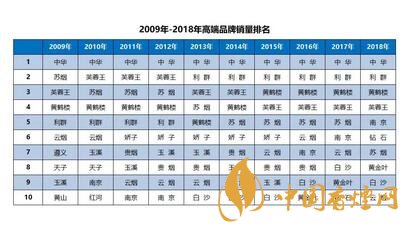2009年- 2018年高端品牌銷量排名