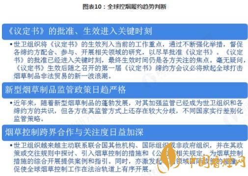 據(jù)國家局、北京市局(公司)、福建中煙、國家局經(jīng)濟研究所共同發(fā)布的《2017年世界控?zé)熉募s進(jìn)展報告》判斷,目前《議定書》的批準(zhǔn)和生效已經(jīng)入關(guān)鍵時刻,未來新型煙草制品監(jiān)管政策將日趨嚴(yán)格。
