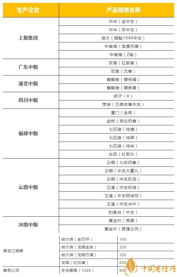中支煙有哪些品牌