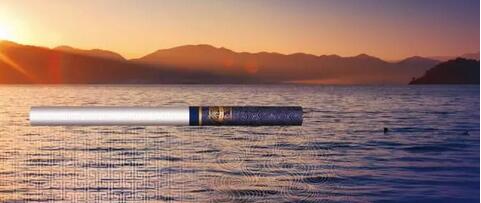 取出一支煙來(lái)仔細(xì)觀賞,卻不似包裝那般低調(diào)。湛藍(lán)色的煙嘴搭配鎏金波水浪紋,看起來(lái)華貴又不失穩(wěn)健,原來(lái)在低調(diào)的包裝之下還有這般威嚴(yán)所在。這種創(chuàng)意靈感來(lái)自云南的著名景觀撫仙湖。每到夕陽(yáng)西下,金黃色的陽(yáng)光灑滿湛藍(lán)色的湖面,波光粼粼之下魚(yú)龍?zhí)S,無(wú)限風(fēng)光盡在此湖。