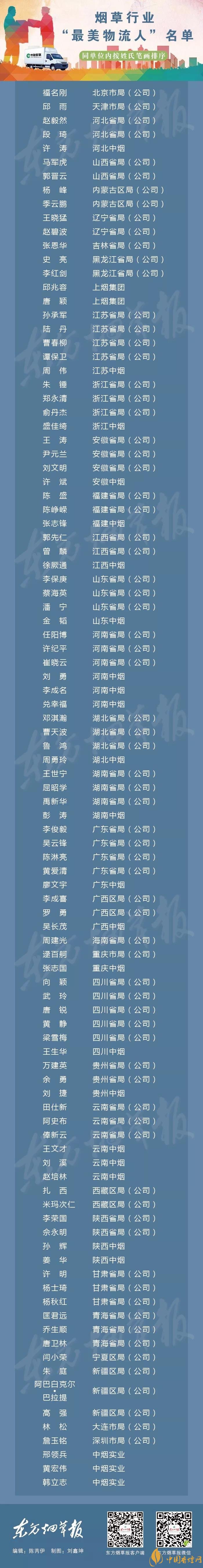 以上就是香煙網(wǎng)小編為大家整理介紹的關(guān)于2018100名基層員工獲評最美物流人名單相關(guān)信息,更多了解點擊:2018細支煙質(zhì)量抽查南京(雨花石)奪冠:一價類綜合質(zhì)量第一