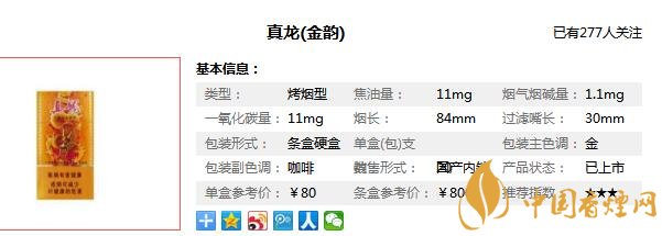 真龍金韻香煙參數(shù)信息