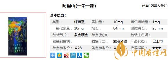 一路一帶香煙參數(shù)信息