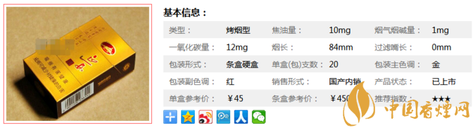 香精香料配方設(shè)計上,與國內(nèi)知名香料公司通力合作共同研究。針對葉組配方吸味特點,篩選純天然進口香料、天然植物提取物豐富、襯托、諧調(diào)煙香,達到了煙草自然純美的香吃味與人工精雕細刻修飾的和諧統(tǒng)一,全方位體現(xiàn)出高端卷煙產(chǎn)品的高雅享受。但經(jīng)香煙網(wǎng)小編市場調(diào)查這款煙價格為45元/包。
