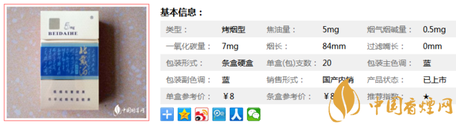 北戴河硬混5mg香煙,俗名:浪淘沙,藍(lán)色的包裝十分精美,很多煙友都是被其包裝吸引過來的,據(jù)了解北戴河香煙原來是河北中煙張家口卷煙廠生產(chǎn)的一款品牌,其產(chǎn)品大都為混合型,也有烤煙,因?yàn)槠鋬r(jià)格低廉煙香純粹,被大家所熟知。下面就由香煙網(wǎng)小編帶大家一起來了解北戴河硬混5mg香煙相關(guān)信息。
