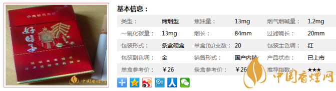 國內(nèi)第一款采用三元復(fù)合生物濾嘴的卷煙,利用分子篩專利技術(shù)吸附煙氣中一氧化碳、亞硝胺等,顯著降低煙氣中的有害成分,比較好地保護(hù)喉部、肺部和人體內(nèi)環(huán)境。下面我們一起來看雙喜硬金樽好日子的參數(shù)信息:焦油量:13mg 煙堿量:1.2mg 一氧化碳量:13mg。