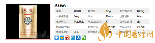 類(lèi)型 :烤煙型 焦油量 :10mg 煙氣煙堿量 :1mg 一氧化碳量 :12mg