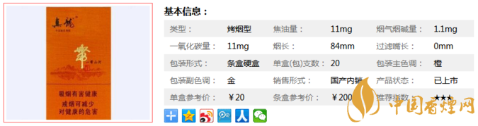 三、真龍一帶山河香煙參數(shù)