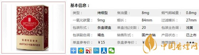 三、七匹狼鴻運香煙參數