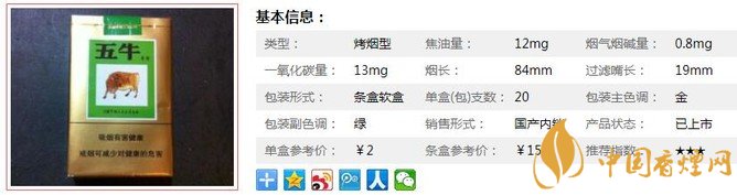 三、五牛綠香煙參數