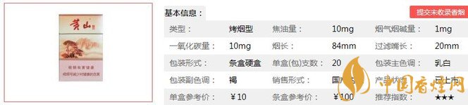 類(lèi)型 :烤煙型 焦油量 :10mg 煙氣煙堿量 :1mg 一氧化碳量 :10mg