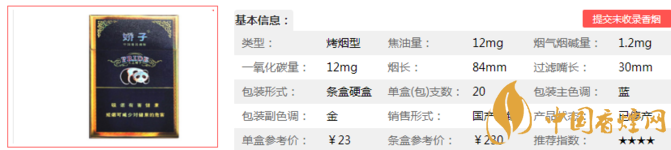 三、嬌子國寶藍(lán)天嬌香煙參數(shù)