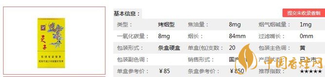 三、嬌子硬正黃天子香煙參數(shù)