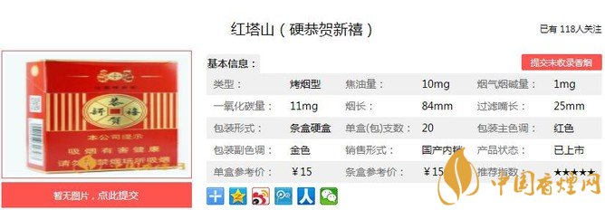紅塔山硬恭賀新禧煙支長(zhǎng)84mm,過(guò)濾嘴長(zhǎng):25mm,紅塔山(硬恭賀新禧)”首創(chuàng)“香氣移植技術(shù)”,并加入獨(dú)創(chuàng)“滇橄欖”提取物,以一縷悠然清香,推動(dòng)煙草對(duì)其本味的充分演繹,自然甘香豐潤(rùn)飽滿回味綿長(zhǎng)。下面我們一起來(lái)看紅塔山硬恭賀新禧的參數(shù)信息:焦油量:10mg 煙堿量:1.0mg 一氧化碳量:11mg