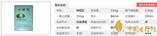 三、小熊貓綠精品香煙參數(shù)