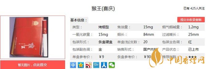 一、猴王喜慶香煙價(jià)格