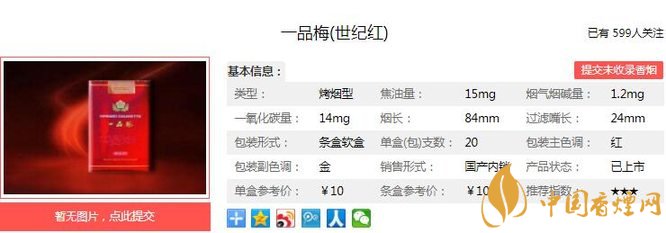 一品梅世紀紅設(shè)計兼顧了卷煙健康消費需求,采用了多項創(chuàng)新技術(shù)。降低一氧化碳含量,大大降低了卷煙危害性,充分體現(xiàn)了卷煙健康消費需求。經(jīng)香煙網(wǎng)小編市場調(diào)查一品梅世紀紅售價為10元/包。