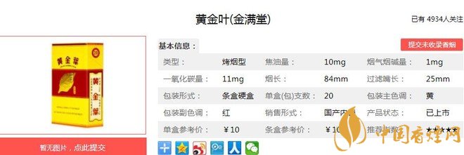 三、黃金葉金滿堂香煙參數(shù)