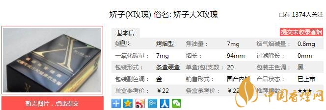 嬌子X玫瑰多少錢一包 嬌子X玫瑰口感及參數(shù)介紹