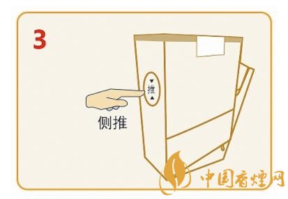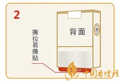翻轉到煙包背面,向上撕開下方易撕貼,輕松撕開下部透明紙。