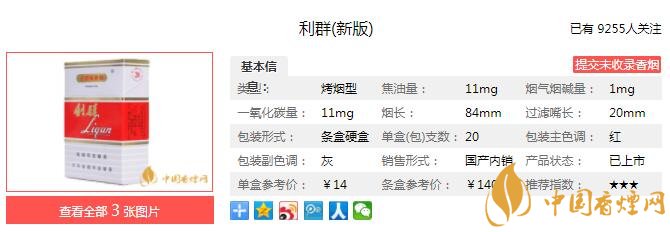 利群新版煙支長84mm,過濾嘴長20mm,利群新版有浙江版與全國版之分,浙江版的過濾嘴樣式,是傳統(tǒng)的雪花狀,而全國版則是呈光滑質(zhì)感的肉色。下面我們一起來看利群新版的參數(shù)信息:焦油量:11mg 煙堿量:1.0mg 一氧化碳量:11mg