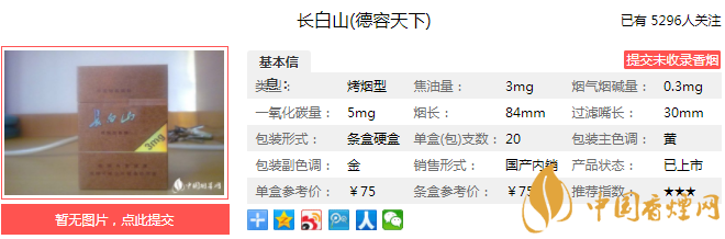 三、長白山德容天下香煙參數(shù)