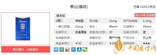 泰山福將多少錢一包 泰山福將口感及參數(shù)介紹