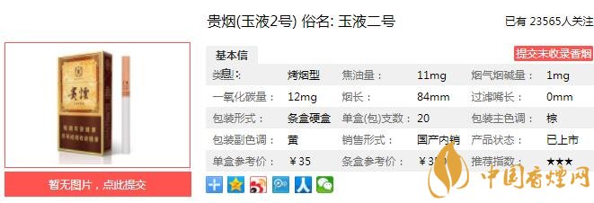 一、貴煙(玉液2號)香煙價(jià)格