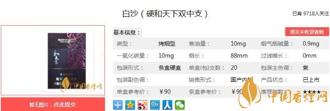 白沙和天下香煙價(jià)格及圖片 白沙硬和天下雙中支90元一包
