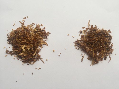 通過上邊的牡丹(軟)香煙真假鑒別圖可以發(fā)現(xiàn):真煙煙絲色澤金黃,呈絲條狀,有油潤質(zhì)感;而假煙煙絲呈棕黑色,碎末率較高,香精味道比較濃。