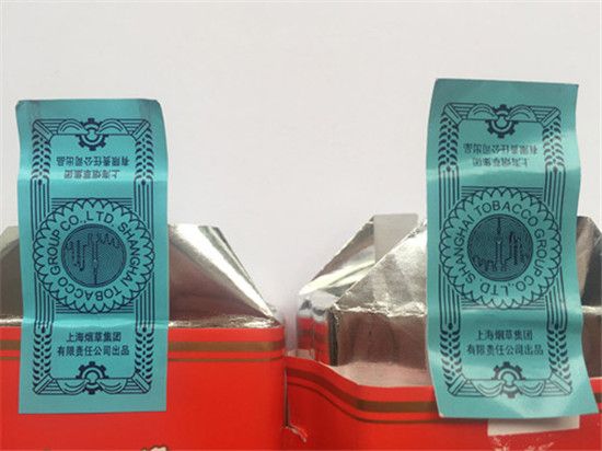 牡丹香煙真煙的封簽紙印刷圖案清晰、細(xì)膩,圖案中間的東方明珠塔塔尖指向正面;而假煙的封簽紙印刷工藝粗糙,圖案模糊,中間的東方明珠塔塔尖指向背面。