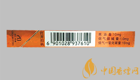 | 類型 :烤煙型 | 焦油量 :10mg | 煙氣煙堿量 :1mg | 一氧化碳量 :10mg |