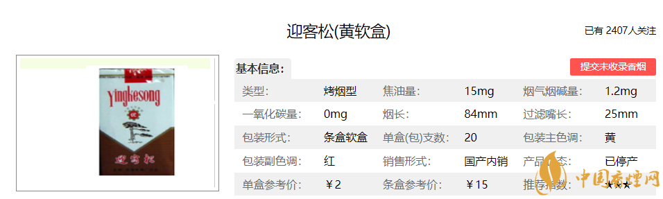 | 類型 :烤煙型 | 焦油量 :15mg | 煙氣煙堿量 :1.3mg | 一氧化碳量 :12mg |