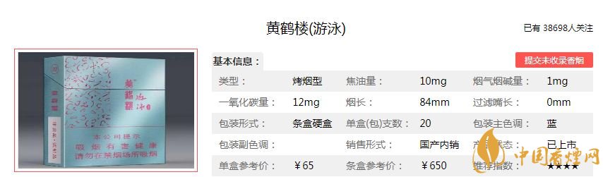 黃鶴樓(游泳)煙價格參數(shù)