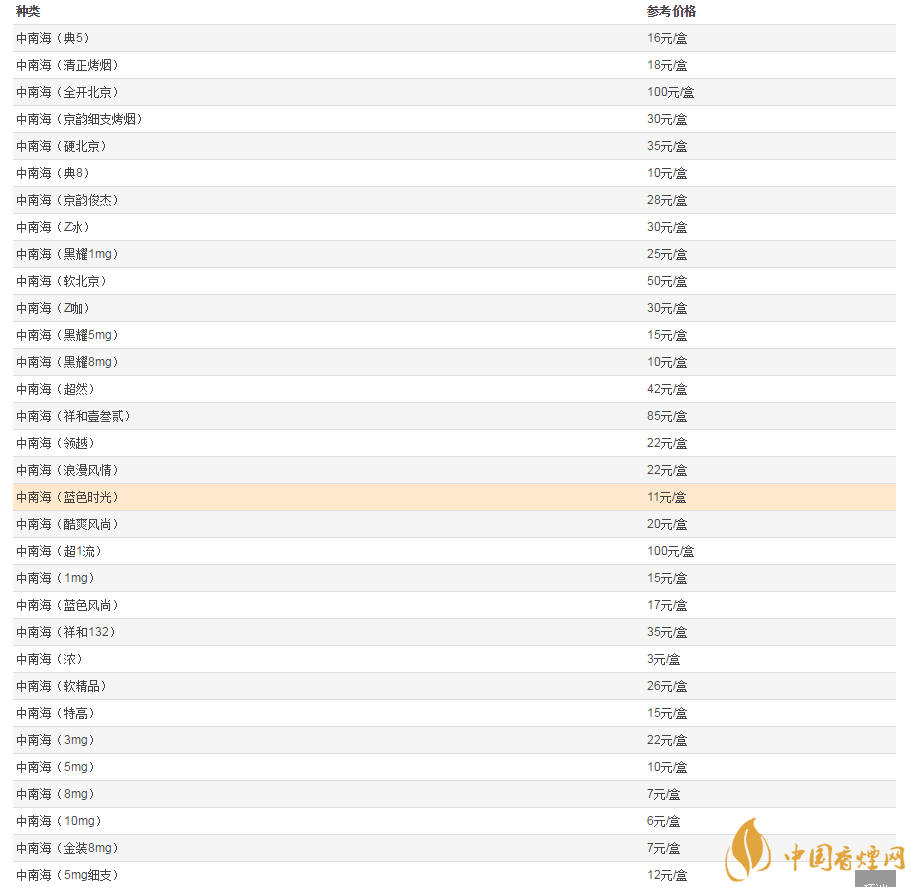 中南海香煙價格是多少 中南海香煙價格表一覽