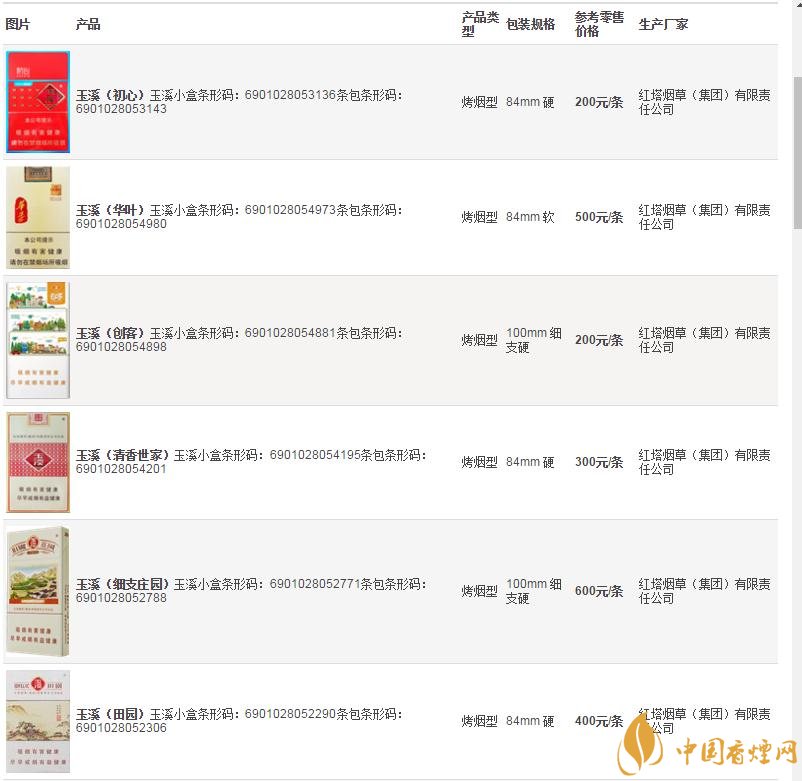 玉溪煙多少錢一包 玉溪煙價(jià)格表和圖片大全一覽