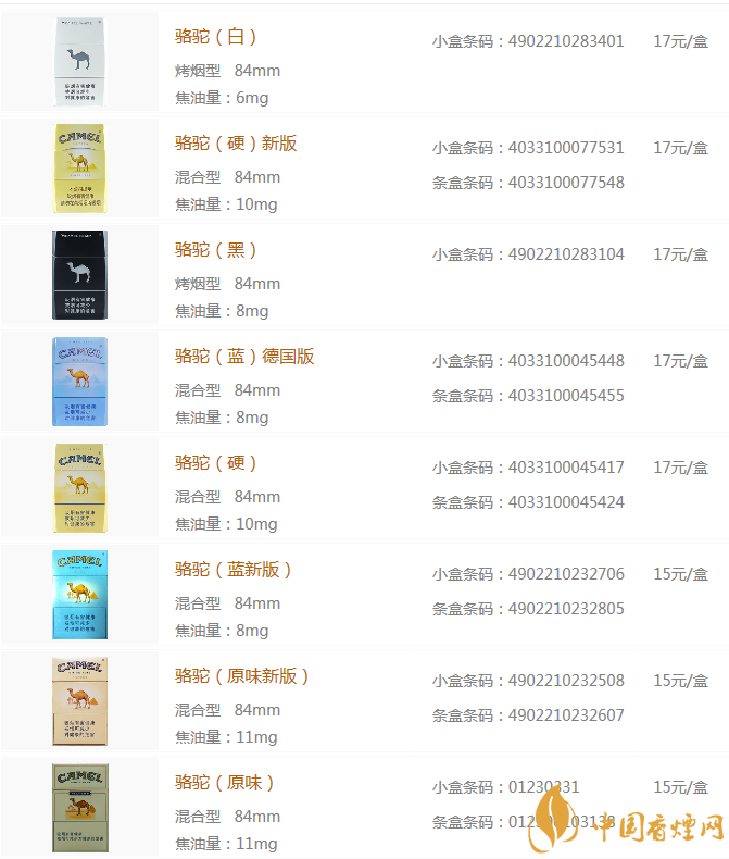 camel駱駝香煙價(jià)格表圖 駱駝香煙價(jià)格排行榜(20種)