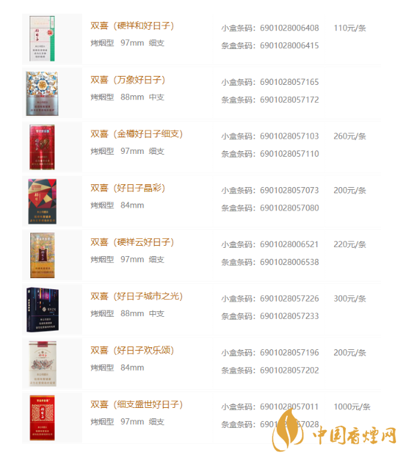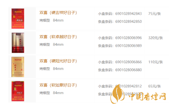 2020年雙喜好日子香煙價格表