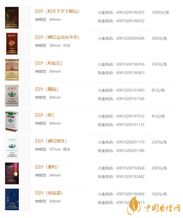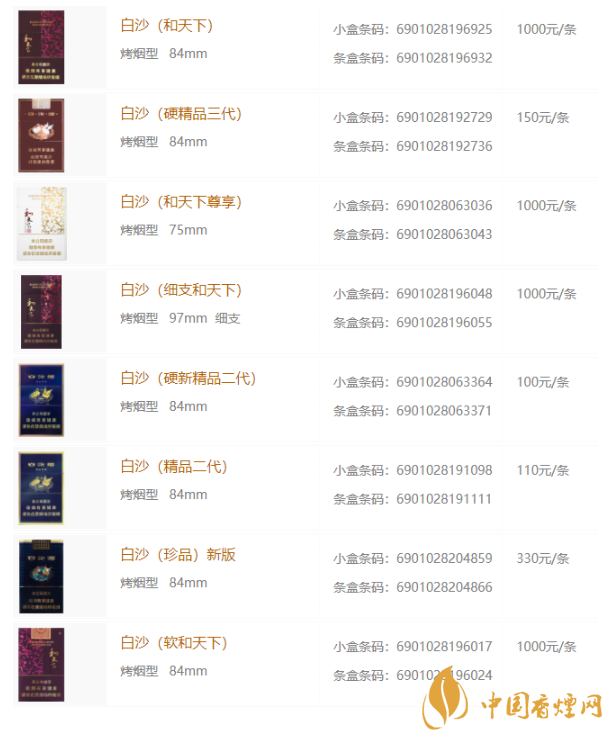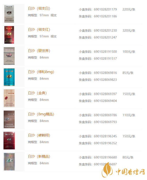 白沙香煙品牌是全國著名的香煙,自品牌創(chuàng)立以來,白沙香煙發(fā)展近40余年。在全國各地都有固定的銷售渠道。白沙香煙每年都投入的大量的產(chǎn)能,發(fā)展勢態(tài)這么好的白沙香煙價(jià)格多少錢一包呢?白沙哪款香煙更好抽?白沙香煙整體口感怎么樣?接下來就由香煙網(wǎng)小編帶大家了解一下白沙香煙價(jià)格表大全