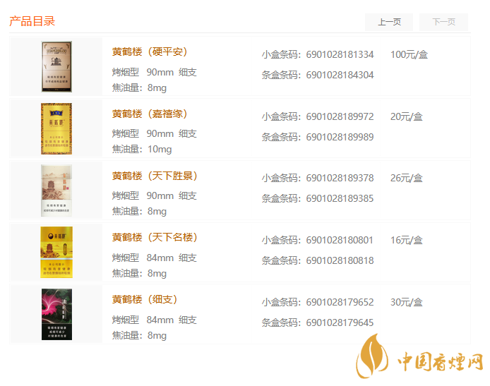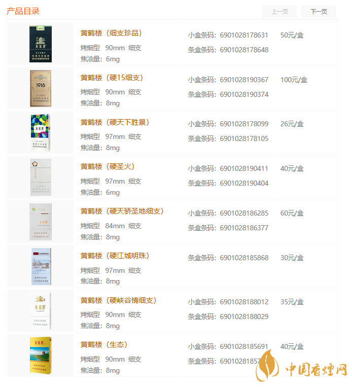 黃鶴樓香煙價格表圖大全 黃鶴樓細支香煙價格一覽表