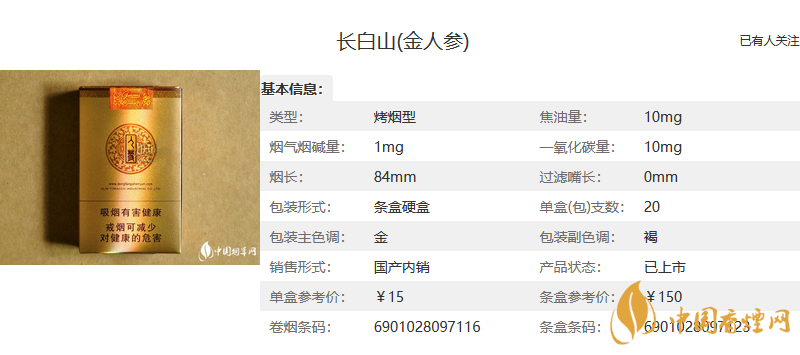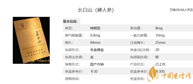 【長白山人參香煙價格表和圖片一覽 長白山人參香煙多少錢一包】相關推薦文章: