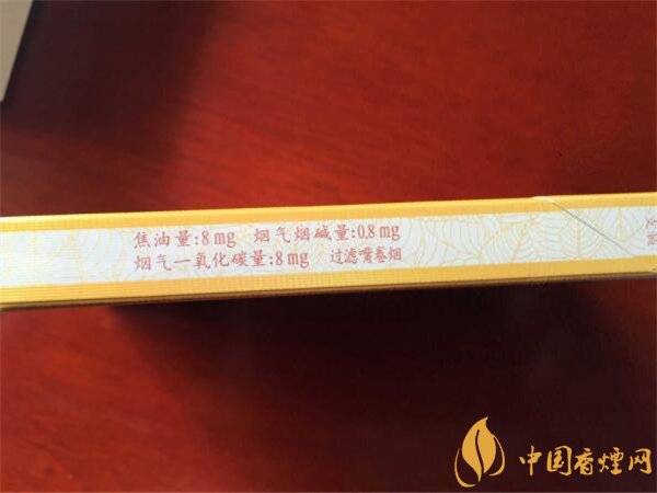 類型 :烤煙型 焦油量 :8mg 煙氣煙堿量 :0.8mg 一氧化碳量 :8mg