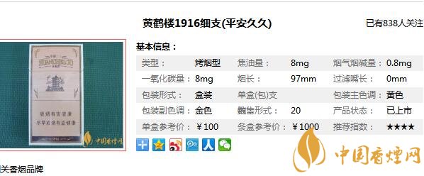 黃鶴樓1916細(xì)支多少錢 黃鶴樓細(xì)支香煙價(jià)格圖片(6款)