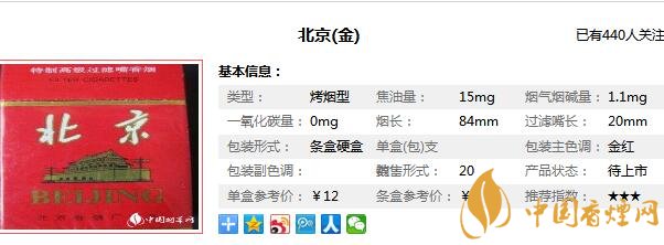 北京卷煙廠始建于1970年,位于朝陽區(qū)管莊西里42號(hào),是一個(gè)占地面積十一萬二千平方米、建筑面積九萬余平方米,工藝布局合理、管理科學(xué)、技術(shù)設(shè)備先進(jìn)、自動(dòng)化水平較高的中國中型卷煙工業(yè)企業(yè),在對(duì)北京喜慶香煙價(jià)格表分析之前,先來看看北京喜慶煙多少錢一包,北京喜慶香煙也就是現(xiàn)在北京(金),它的售價(jià)為12元/包。