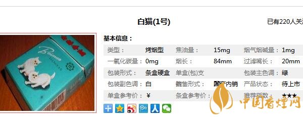 以上內(nèi)容是由香煙網(wǎng)小編為大家收集以及整理的關于,白貓香煙多少錢一包相關信息,想要了解更多信息詳情請點擊:北京香煙多少錢一包。