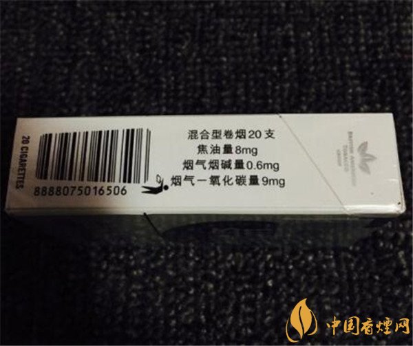 類型 :混合型 焦油量 :8mg 煙氣煙堿量 :0.7mg 一氧化碳量 :8mg