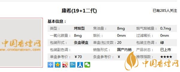 康希香煙參數(shù)信息
