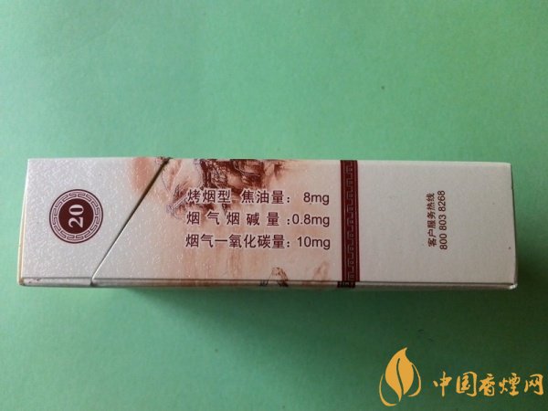 類型 :烤煙型 焦油量 :8mg 煙氣煙堿量 :0.8mg 一氧化碳量 :10mg