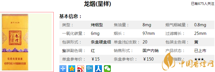 作為一款零售價格150元/條的細(xì)支卷煙,龍煙(呈祥細(xì)支)所用配方與哈爾濱龍煙(系列)價格表零售價550元/條的“龍煙(祥和)”以及零售價320元/條的龍煙(萬福)相當(dāng)。